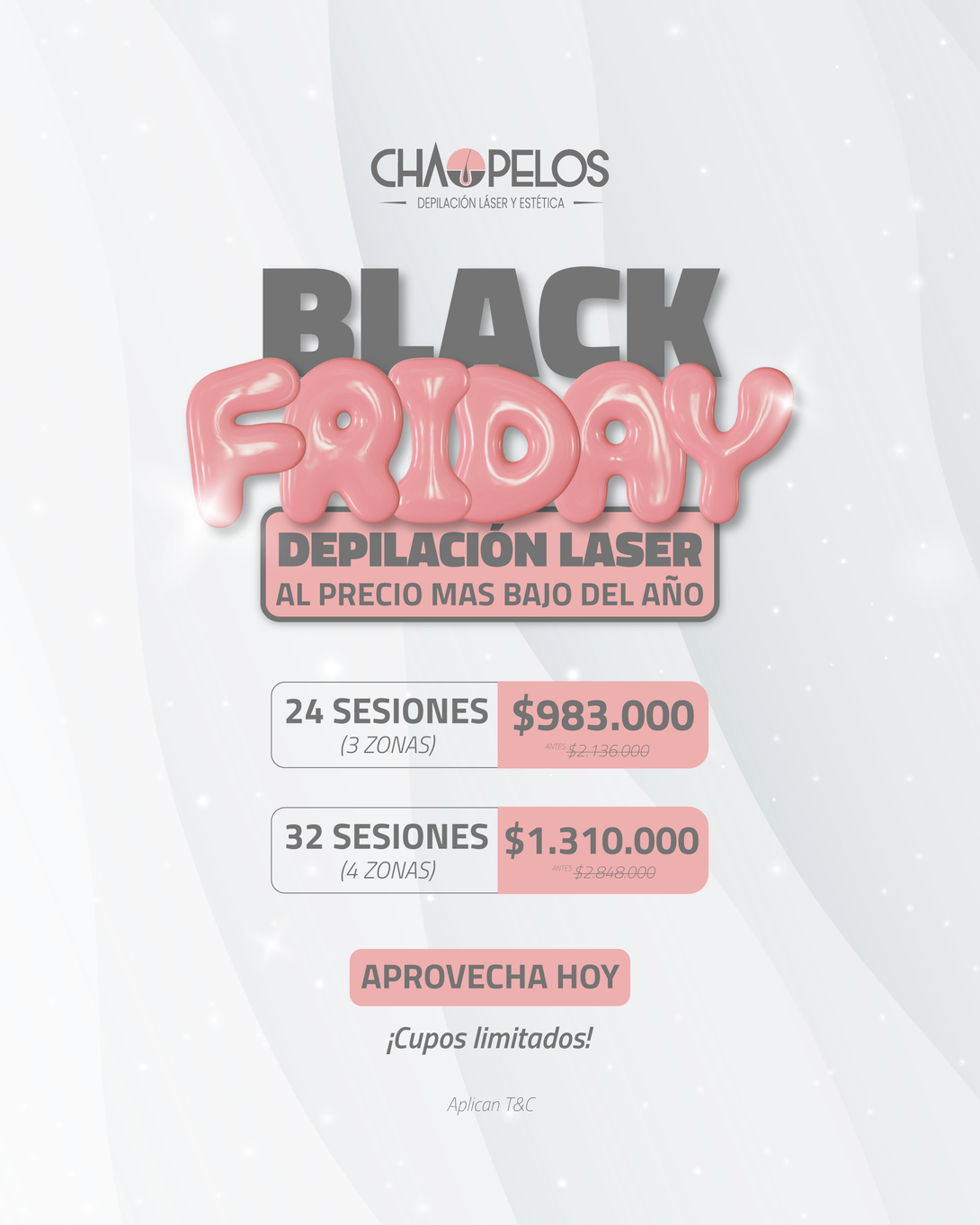 Aprovecha nuestras promociones de BLACK FRIDAY comprando en la página web 3 o más zonas de depilación láser y recibe una cita de valoración médica GRATIS.